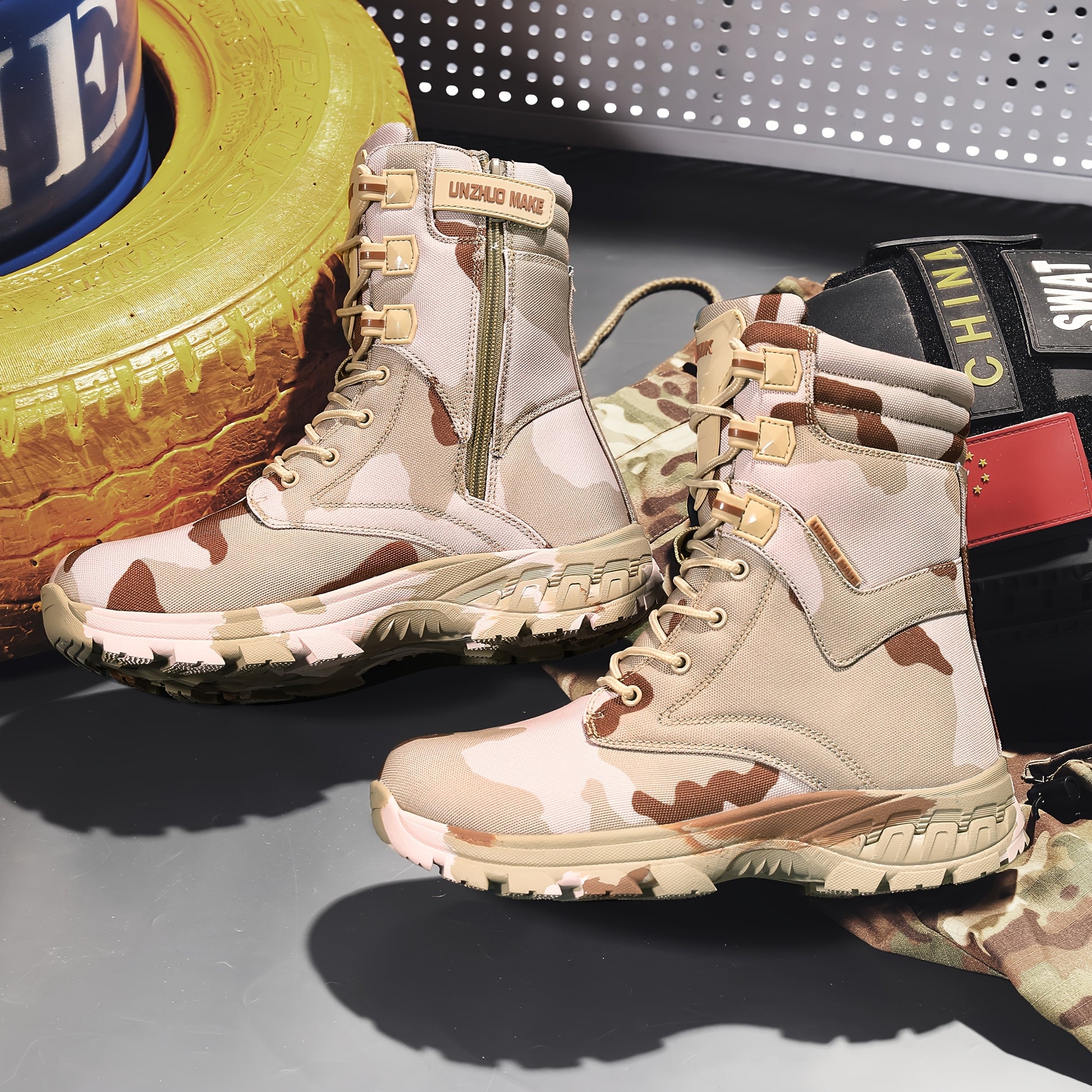 Men's Camo High-Top Hiking Boots - Stylish Durable Work Shoes